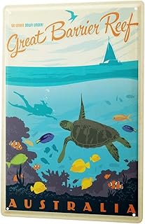 LEotiE SINCE 2004 Plaque en Métal Métallique Poster Mural tin Sign Aventurier Grande Barrière de Corail en Australie Poissons de Tortue Corail