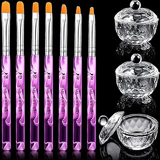 10 Pièces Outils de Manucure Ongle, 3 Bol en Verre Transparent Art d'Ongle Tasse Dappen avec Couvercle et 7 Brosse à Ongles Acrylique Pinceau de Peinture 3D Stylo Pinceau Gel UV pour Halloween Noël