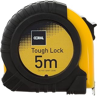 Outils de corail Corail 57405 rigide Lock Mètre à ruban de poche avec déroulement métrique Règle en acier et clip ceinture 5 m de long 19 mm de large – Jaune