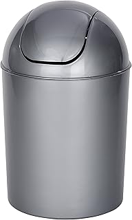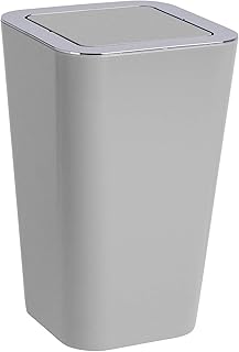 WENKO Poubelle à couvercle oscillant Candy gris - Poubelle avec couvercle oscillant Capacité: 6 l, Polystyrène, 18 x 28.5 x 18 cm, Gris