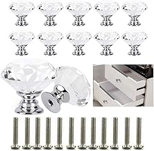 Xinlie Boutons Cristal Poignée De Porte Pour Tiroir Meuble Armoire Placard Verre Knob Transparent Poignées Boutons Transparent Diamant Cristal Verre Portes Meuble Tiroir Placard Décoration (12 Pièces)