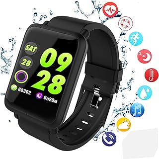 BYTTRON Montre connectée Bluetooth IP68 étanche avec écran Tactile de 1,3 Pouces avec Moniteur de fréquence Cardiaque, Moniteur de Sommeil, podomètre, Notification d'appel SMS pour iOS Android