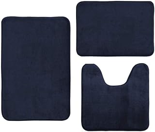 Flanelle Tapis de Salle de Bain Sets 3 Pièces, Absorbant Antidérapant 50x80cm Décoration Toilette Tapis Rugs Tapis de Contour WC Couvre Couverture de Toilette Siège (Bleu Marine)