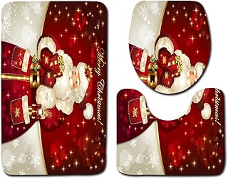 Papasgix 3 pièces Merry Christmas Ensemble de tapis de bain, Lot de tapis de bain antidérapant Tapis de salle de bain/toilettes de toilette/Coque Santa Claus