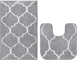Gearific Ensemble de Tapis de Bain et de piédestal 2 pièces, Tapis de Toilette antidérapant Tapis de Salle de Bain Lavable pour Salle de Bain (Gris Clair)