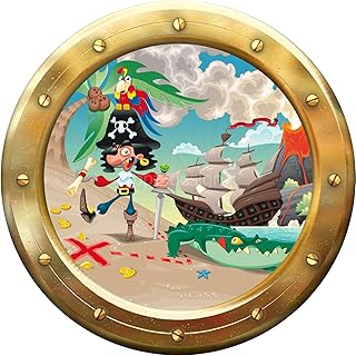 PPA DESIGN Sticker Hublot Enfant Trompe l'oeil Perroquet Bâteau Pirate- SEH0033 (20x20cm)