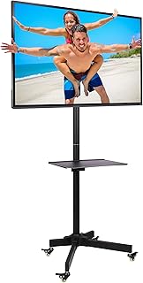 FITUEYES Chariot Meuble TV sur roulettes Support Télé Pied pour Ecran de 32 à 60 Pouces LED LCD Plasma avec 2 Étagères, Réglable en Hauteur, VESA Max 600 x 400 mm