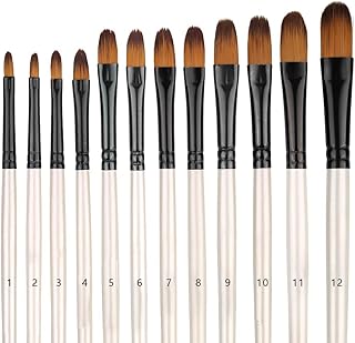 Lot de 12 pinceaux de Peinture à l'aquarelle d'artiste Kit de Peinture Acrylique à Pointe Plate et à l'huile Artistique - Acrylique, Aquarelle, Gouache, modèle, Visage