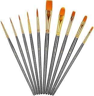 ' Pinceau d’art,10 Pack Pinceau de Peinture Nylon Peinture Brosse à l'huile Acrylique Paint Brushes pour aquarelle et peinture de Visage Artisanat Bricolage Noir'