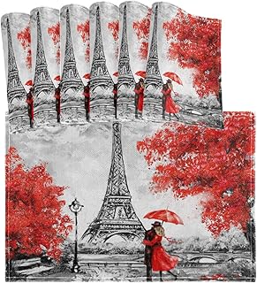 Oarencol Lot de 6 sets de table vintage Paris France Tour Eiffel Couple Saint Valentin Résistants à la chaleur Lavables Propres Sets de table pour la décoration de table de salle à manger