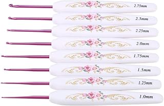 HEEPDD Crochet Tricot, 8PCS Aiguilles à Crochet en Aluminium Crochet Set Aiguilles À Tricoter avec Manche en Plastique Floral Imprimé Manche Tissage Fil Craft Set(M)