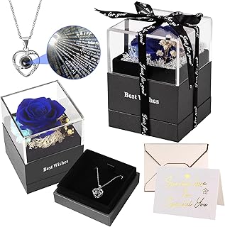 Boîte-Cadeau Éternelle Rose, Rose Eternelle avec Love You Collier boîte à Bijoux, Coffret + Sac Cadeau + Carte de Voeux, pour Noël, Saint-Valentin, Maman Le Jour de L'anniversaire Ect