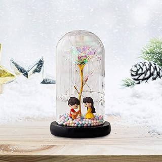 sweety Boîte À Musique Boule De Cristal 3D, Fleur Éternelle, Boîte À Musique Rotative Lumineuse avec Projection De Lumière LED, Meilleur Cadeau pour l'anniversaire De La Saint-Valentin