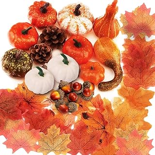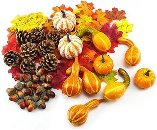 ASTARON 56 pièces décorations d'automne d'automne, Mini citrouilles artificielles, Pommes de pin artificielles de Glands, Feuilles d'automne pour la fête de Thanksgiving de décoration d'halloween