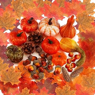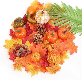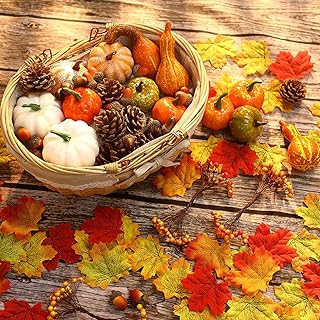 HooAMI 166 Pièces de Feuilles D'érable Artificielles, Citrouilles, Cônes de Pin et Glands Automne Décoration Légumes Artificiels pour Halloween Thanksgiving Automne Home Decoration