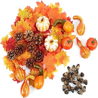 UMYMAYDO1 Lot de 166 citrouilles artificielles, décoration d'automne, pommes de pin, glands, feuilles d'érable de soie, citrouille de la bouteille, Thanksgiving, Halloween, décoration de table