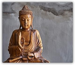 Tulup Planche À Découper - 60x52cm - Protection Plaque Induction Cuisson Tapis de Découpe Verre Trempé - Bouddha En Bois