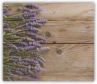 Tulup Planche À Découper - 60x52cm - Protection Plaque Induction Cuisson Tapis de Découpe Verre Trempé - Lavande Sur Le Bois