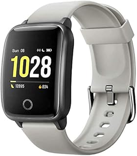 jpantech Montre Connectée Femmes Homme Smart Watch Montre Sport Podometre Cardio Frequencemètre Chronomètres, Bracelet Connecté Etanche 50 Mètres, Montre Tactile pour Android iOS Téléphone(Gris)